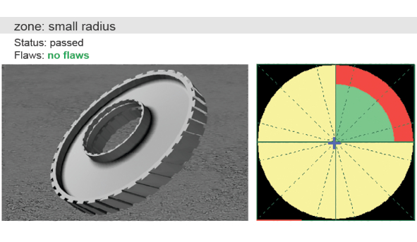 The laser scanning and flaw detection test bench ROBOSCOP VTM-5000/DISK is designed for the non-destructive testing of aircraft engine parts, which product range is variable by type and size.