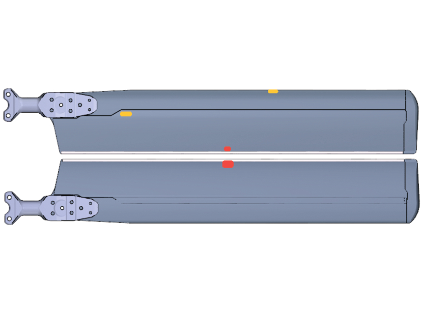 The selection of test techniques and probes is programmed for the initialization steps. All NDT methods are simultaneously available. The specification of scan areas, movement paths and test speed is performed by the CAD application "Method Designer". For composite panels, sensitivity adjustment of ROBOSCOP VTM-5000/COMPOZITE is done layer-by-layer, with regard to the physical properties of material (attenuation). During the impedance test, the optimal spectrum of probing signal is automatically selected for each material during the system initialization. The scalability of ROBOSСOP VTM-5000/COMPOZITE allows testing parts of various shapes and sizes, the criteria ofrequired mechanization are individually specified at the design stage.